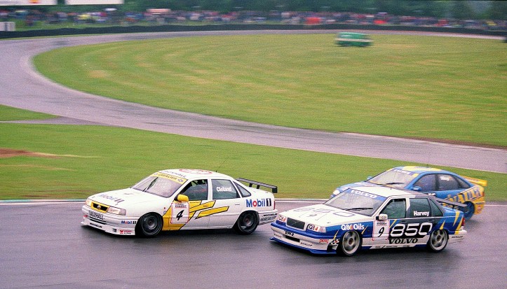 The Brands Hatch GP circuit was much like the Indy layout earlier in the year. It was wet. Again. Alain Menu had plonked his Renault Laguna on pole and held it at the get-go. Behind him the two Vauxhall Cavaliers of James Thompson and John Cleland did not have the getaway driver setting that they seemed to have in similar conditions at the track in the first visit of the season, this time Cleland saw two cars ahead make a run, then rub, with Thompson gaining a puncture. A smash and grab behind them saw a couple of cars fall to the back of the grid but up front Menu was away. Cleland slipped back a little and was chased by the Volvo of Tim Harvey, who edged past the Vauxhall at Druids, then the fashionable red flags came out thanks to Tim Sugden rolling his Toyota at Clearways. A five-lap aggregate run followed. Menu controlled that, Cleland came second and Harvey, despite being overtaken by Will Hoy in the second Laguna, was in the final podium place once the sums had been done. It was reds again at the start of race two. The re-gridded field tried again, and more reds came out. Third time lucky – after a talking to for the whole field on the start/finish line by the clerk of the course, and the rain was properly dropping buckets over the track now. This time the Vauxhall duo made mincemeat of Menu with Cleland getting into the lead from the off. The pair made off in unison to collect a one-two. Menu collected third for Renault with teammate Hoy coming behind. Tim Harvey finished fifth after challenging Hoy in the latter stages. The result gave Cleland a two-point lead over Menu in the standings.