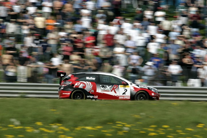 Pole position for Jason Plato would develop into a first win of the season for the works Seat squad. The S2000 class saloon had been hampered weight wise compared to the new Astra and Honda Integra, and across the season there would be weight breaks, but the car and driver just seemed to suit Oulton Park in the early running. Dan Eaves got the better of his teammate Matt Neal at the start and the two Honda drivers would have the VX Astra of Yvan Muller chasing them down. They dropped the Astra and the Honda duo went to work with Neal grabbing second at turn one at half distance. Neal then closed the gap to Plato and was all over the leader in the closing laps, but had to settle for second. Plato, Neal, Muller and Eaves was the order coming out of turn one on the opening lap of race two. A gargantuan battle for the lead, from the entry to Lodge around to Cascades – all side-by-side – allowed Neal into the lead, but Plato was punted off by Muller, leaving Neal, Muller and Eaves to claim the podium with Plato in tenth. The third race was wet with Plato on pole. The Seat made a decent getaway, but sixth placed Tom Chilton shot through to second. Any chance of a win was thrown away by Plato when he ran wide at the hairpin, where Rob Collard made a move on Chilton to take the lead. The shift back came when Collard locked up at the hairpin and the leaders ran side-by-side over the hill, with Collard locking up at the chicane, allowing Chilton to take the lead. Collard the lost second to Neal and another slot to Eaves, before Eaves himself locked up, allowing a recovering Plato into third, to join Neal and Chilton on the rostrum.